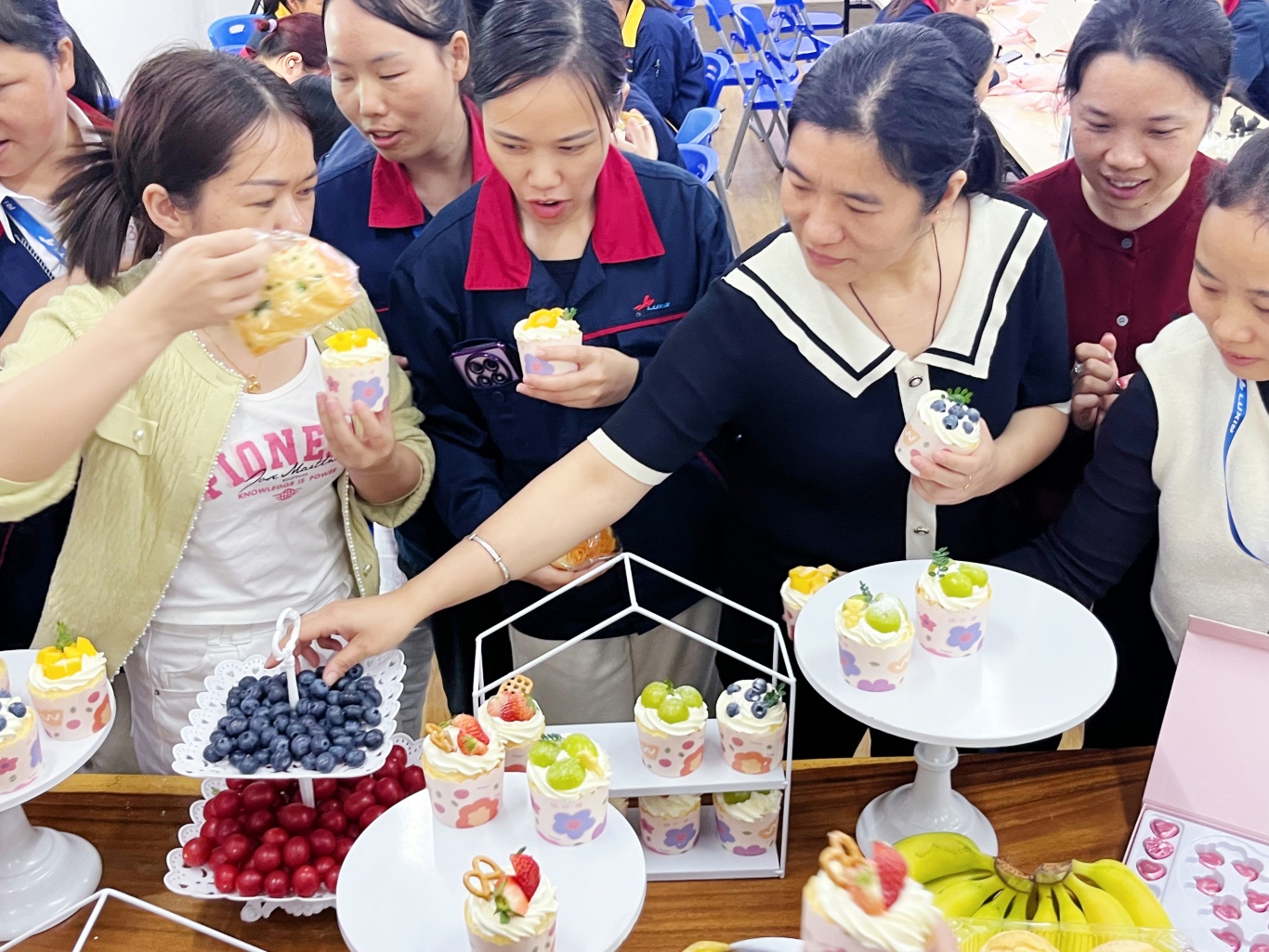 In addition to the handmade process, we also prepared exquisite afternoon tea and souvenirs. The combination of drinks and cake added a sweet pause to this evening. Everyone sat together, chatting about their handmade feelings, sharing each other's compliments, and laughter gently echoed in the conference room.